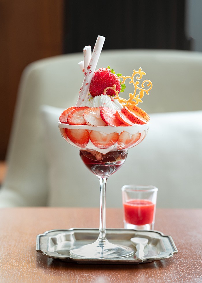 濃厚なアイスクリーム、生チョコレートを主役に、コーヒーアイスやパンナコッタ、ブルーベリージャム、ピスタチオプードル、キャラメルシャンティなどチョコレートと相性抜群の素材を織り交ぜた、甘さ控えめで最後まで味のグラデーションを楽しめるご褒美パフェです。