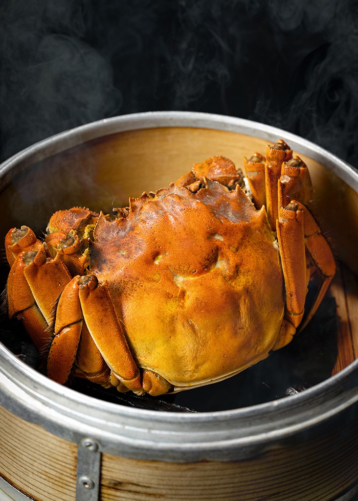 中国の秋の味覚を代表する上海蟹。「鎮江香醋(ちんこうこうず)」という黒酢をかけてお召し上がりください。