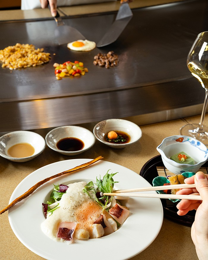 1名様 22,000円帆立の貝柱やヤリイカのリーフサラダは、エスプーマドレッシングを「混ぜて」お召し上がりください。