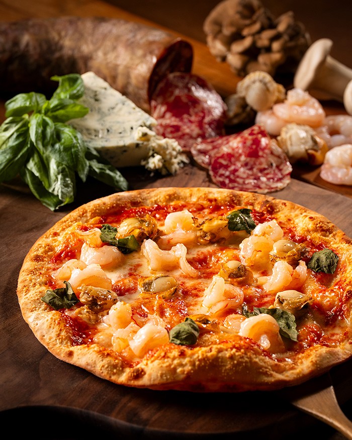 お好みの具材を選んで「MIX」、パリッと焼き上げるシェフの技も必見です。- トッピング2種類(20㎝)2,200円 /(30㎝)2,800円
